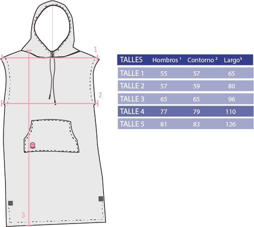 Ancho de Hombros 77 cm (contorno 79 cm) x Altura delantera 110 cm.